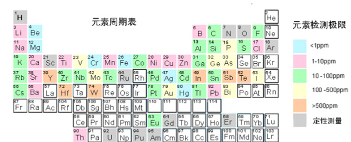 對LIBS系統(tǒng)進行定標后就可以對基體材料中的微量元素進行定量分析,比如分析鋼材中的鉻、鋁合金中的鎂、玻璃中的鐵、硫酸銅中的銅等。定標時要使用經(jīng)過鑒定的樣品材料,這個樣品材料與被測材料具有相同的基體,但含有不同含量的被分析元素。在分析時通常采用所謂的“內(nèi)部標準化”的過程,即把被分析元素的譜線強度和基體材料的譜線強度進行比較,這樣就可以減少由于激光的脈沖能量不一致性所導致的等離子體條件變化對測量結(jié)果的影響。要想得到好的分析結(jié)果就要對LIBS的硬件進行仔細的設計并采用合適的測量方法。LIBS系統(tǒng)測量的靈敏度與許多因素有關(guān):被分析物和基體材料的結(jié)合方式, LIBS系統(tǒng)和被測樣品的距離,以及是否需要遙測等。LIBS系統(tǒng)測量結(jié)果的正確性可優(yōu)于10% ,精度可優(yōu)于5%。不同元素的典型檢測限請參閱下面的元素周期表。