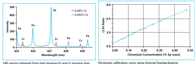 LIBS技術(shù)可以直接對材料進行分析,而不需要對材料做任何預處理。 但如果樣品表面涂覆有其他物質(zhì)(比如氧化的或者涂層的鋼材)時,則要用激光先把樣品表面的涂層清理干凈,把下面的被測材料暴露出來,才能對樣品做分析。激光清除過程的效率取決于所要清除的材料種類以及所激光能量。通常對于幾百微米厚的氧化物、油污或者涂層,使用一個小巧的低功率激光器就可以很快清除干凈。此外,激光等離子體產(chǎn)生的超聲震波對去除半流體或者粘滯性污物有非常好的效果。例如,利用 LIBS技術(shù)可以分析表面裹有幾厘米厚的氫氧化鎂礦泥的金屬。