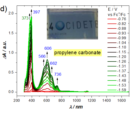 紫外-可見(jiàn)-近紅外光譜電化學(xué)測(cè)量的結(jié)果,可以根據(jù)施加的電位收集絕對(duì)或差值光譜。在后一種情況下,吸收帶位置、形狀和強(qiáng)度的變化會(huì)更加明顯。